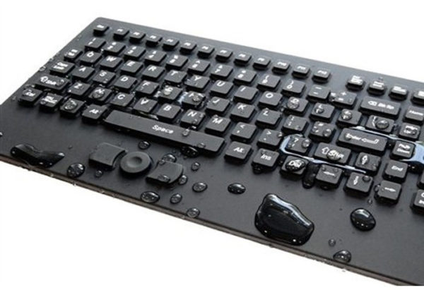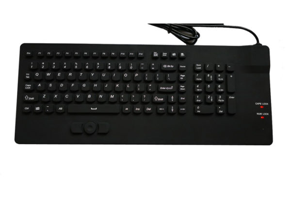 2-in-1 silicon industrial keyboard with built-in hula point mouse, rigid and rugged