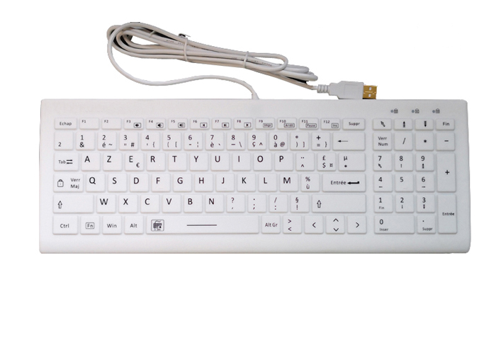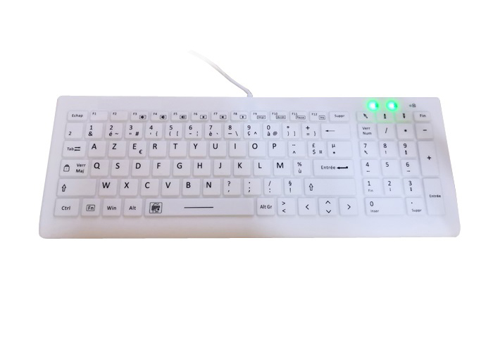 This compact keyboard but with full keyboard function is 100% waterproof IP68 medical silicone keyboards with nano silver antimicrobial when processing the raw material, which are the two most critical components for effective medical keyboards. The keyboard is with excellent scissor switch and all the keys can be disabled, so the keyboard can be cleaned with sprays or wipes without ever being disconnected or powered down. They can be soaked in bleach, washed in a sink and they are dishwasher safe as well. IP68, which is the highest rating against dust, debris, and liquid ingress, signifying that PAC medical /industrial keyboards/mice are waterproof and fully submersible. The backlight version is optional, as well as magfix version for better solution on mobile medical metal carts.