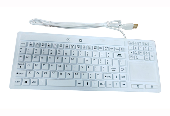- A specially designed medical / industrial keyboard, rigid and rugged, IP68 waterproof and washable, made of silicone, with durable coating withstand to most chemicals and liquids under harsh environment, with nano silver antibacterial treatment
